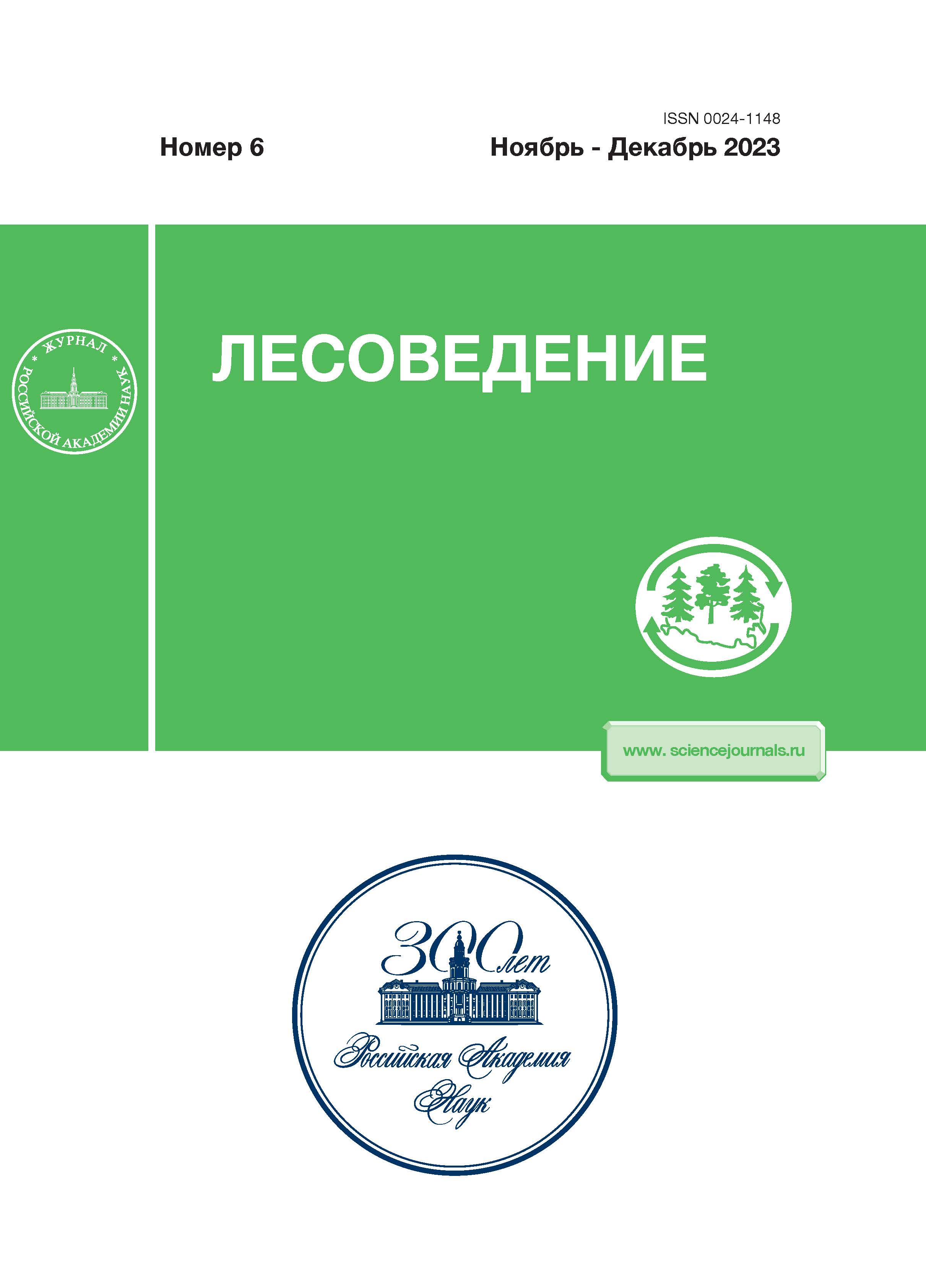 The article presents the results of studies of the pine catena’s stands structure, conducted in the Zapadnodvinsky forestry of the Tver region (Zapadnodvinsky forest-swamp station of the Institute of Forest Science of the RAS, IFS RAS), linking the biogeocenosis of the forest and swamp parts of the oligotrophic bog. The purpose of the research is to study the forestry characteristics, morphometric indices, origin, age structure, dynamic processes and volume indicators of pine stands during the transition of the forest part of the catena to the oligotrophic bog. The pine catena includes four sections with a total length of 110 m and a width of 40 m: the upper forest automorphous zone (PP 1), the slope transit zone (PP 2 and 3) and accumulative zone (PP 4) with forest types changing from cranberry-blueberry pine woods of II quality class to shrub-sphagnum meso-oligotrophic pine woods on 6 m of peat (V quality class), underlain by organic lake sediments. The age structure of stands varies from the conditional evenly-aged restorative dynamics in the forest part to the highly-unevenly-aged dynamics found closer to the climax phase of the meso-oligotrophic sphagnum swamp. The forest part is characterized by the better condition indicators’ values, while the oligotrophic bog’s stands have the worst ones. The pine biogeocenosis of an oligotrophic sphagnum bog is close in dynamic characteristics to sustainable climax forest communities with a maximum age of the first generations trees of approximately 240–280 years. The stands condition along the catena profile varies from healthy in the forest part to the weakened with the degradation development dynamics in the accumulative part of the sphagnum bog.