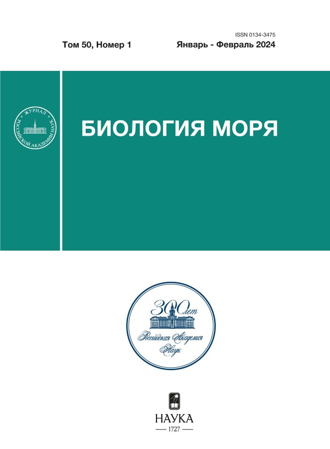 Проведена сравнительная оценка содержания Fe, Zn, Cu, Cd, Mn, Pb и Ni в мягких тканях двустворчатых моллюсков Mytilus trossulus, M. galloprovincialis и их гибридных форм из б. Миноносок зал. Петра Великого (Японское море). Достоверных различий в накоплении Fe и Cd в тканях всех исследованных групп моллюсков не выявлено. Показано, что гибридные формы этих видов имели более интенсивный рост, и на этом фоне накапливали в своих мягких тканях достоверно меньшие концентрации таких металлов, как Cu, Mn, Pb и Ni, по сравнению с родительскими видами. Выявлена достоверная отрицательная корреляционная связь между накоплением этих металлов в тканях моллюсков и длиной, массой их раковин и мягких тканей в целом. M. trossulus, имевшая достоверно меньшую массу створок и мягких тканей, отличалась от M. galloprovincialis накоплением достоверно больших концентраций Zn, для которого не обнаружено связи его содержания от всех исследованных размерно-весовых характеристик. Проведенное тестирование не выявило значимой зависимости накопления всех исследованных металлов, за исключением Pb, в тканях моллюсков от их индекса кондиции. Полученные результаты указывают на необходимость учета вышеперечисленных особенностей микроэлементного состава мягких тканей исследованных видов, при использовании их в мониторинге загрязнения среды тяжелыми металлами.