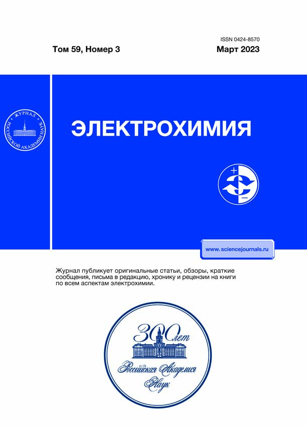 The effect of the nature of the transition metal ion (electron configuration 3d0 and 4d0) on the local structure and electrochemical properties of lithium-rich oxyfluorides with disordered rock-salt structure Li1 + x(MеMn3+)1 – xO2 – yFy, where Mе = Ti4+, Nb5+, 0.2 ≤ x ≤ 0.288 and 0.05 ≤ y ≤ 0.15 is studied. The compounds are thoroughly investigated by the methods of X-ray diffraction analysis, scanning electron microscopy, granulometry, electron spin resonance spectroscopy, and galvanostatic cycling. The galvanostatic-cycling curves of the compounds have two plateaus in the voltage regions of 3.3–3.4 and 4.1–4.3 V. They can be attributed to redox-processes involving two couples: Mn3+/Mn4+ and O2–/O–. In the case of Ti-containing oxyfluorides with disordered rock-salt structure, with the increasing of fluorine content the contribution from O2–/O–-couple during the electrochemical process decreases. In both systems of the oxyfluorides with disordered rock-salt structure we observed formation of paramagnetic clusters Mn3+–O–Mn4+ whose number increased with the increasing of Mn content. The largest clusterization is observed for the sample Li1.266Nb0.217Mn0.55O1.85F0.15. At the same time, the diffusion coefficient for Nb-containing oxyfluorides with disordered rock-salt structure is lower by order of magnitude than for the Ti-containing ones. This may be connected with the strongest clustering of Mn3+ ions, which hinders the Li+ ion macrodiffusion and, as a consequence, deteriorates the kinetics of the process.