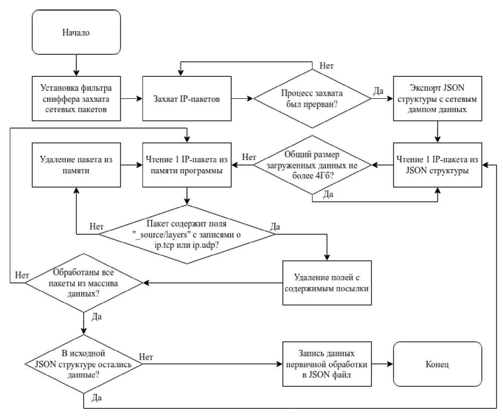 На рис. 3 описан первичный алгоритм обработки данных, полученных из анализатора пакетов.