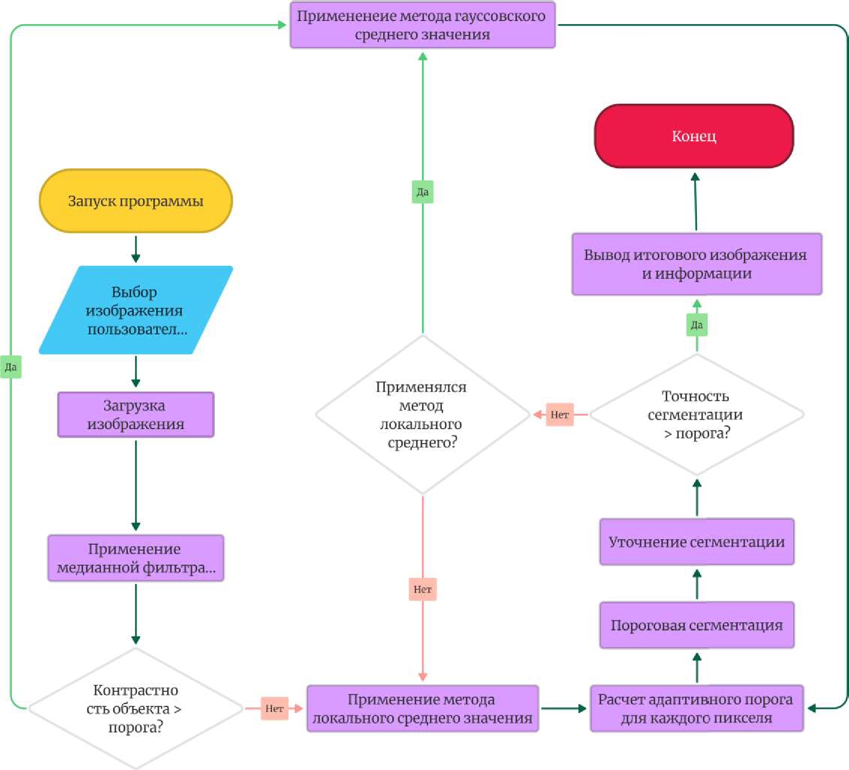 Рис. 5. Алгоритм применения пороговой сегментации