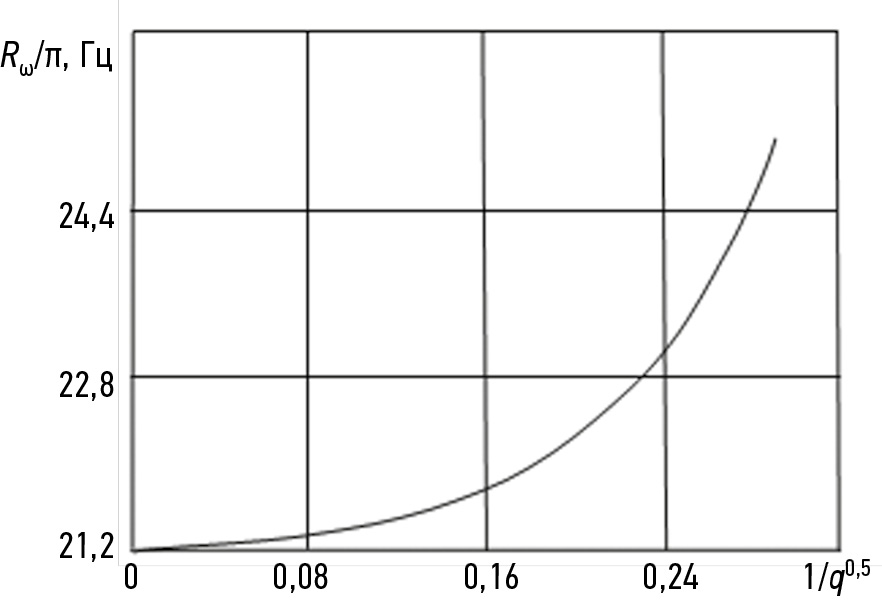 Fig. 4. Dependence of Rω on f (1/q0,5).