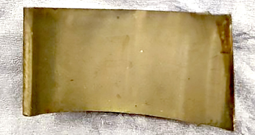 На наружную поверхность пера и верхнюю часть полки лопаток нанесено двухслойное жаростойкое покрытие системы Co–Cr–Al–Y (СДП-3А) толщиной ~ 120 мкм + ZrO2 (КДП-1) – ~ 50 мкм [9].