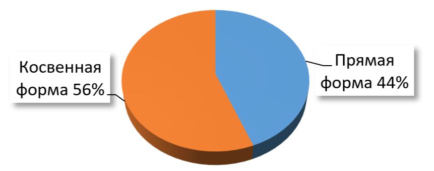 Итак, что касается форм психологизма, то прямая и косвенная формы используются в повестях примерно в равном соотношении с небольшим преобладанием последней: прямая форма − 44 %; косвенная форма – 56%.
