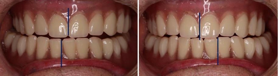 С учетом рекомендаций специалистов при постановки искусственных зубов ориентировались на среднюю линию альвеолярного гребня, что в последующем обеспечивало равное распределение жевательной нагрузки на кость.