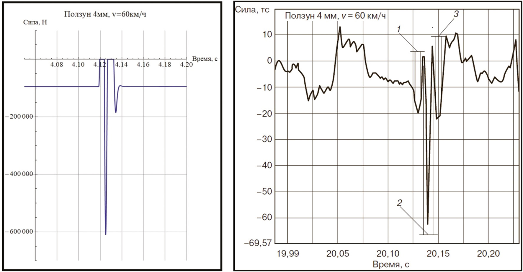 Цель — разработка математической модели ударного взаимодействия колеса, имеющего ползун, с рельсом, верификация модели и получение зависимости максимального значения силы ударного взаимодействия в зависимости от глубины ползуна, скорости движения вагона и его массы.