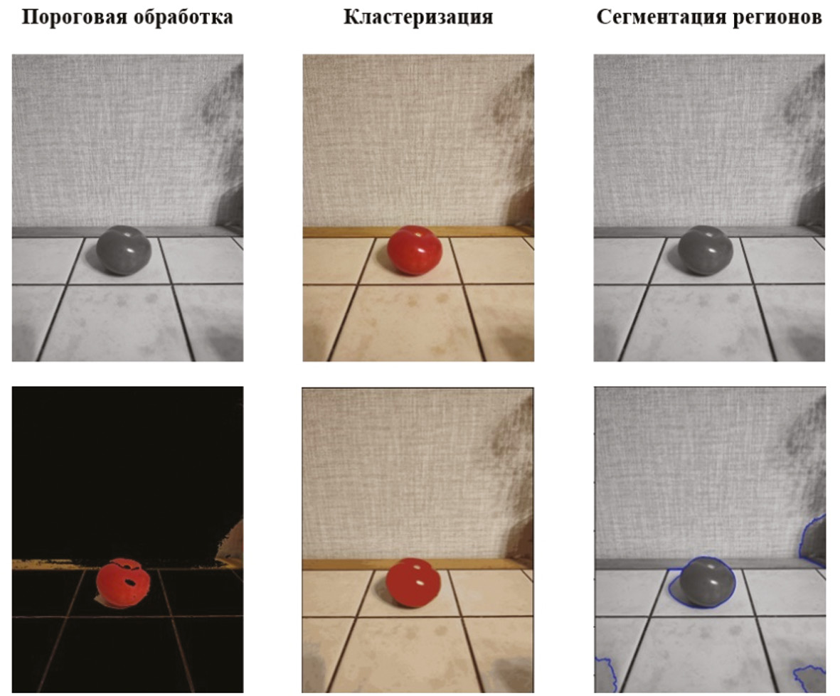 Рис. 1. Пороговая обработка, кластеризация, сегментация регионов